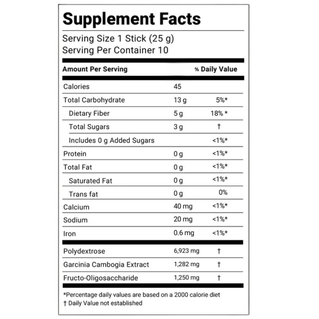 Formulated with Polydextrose, Fructo-Oligosaccharides, and Garcinia Cambogia Extract to support digestion and reduce bloating.Enhanced with Collagen, Hyaluronic Acid, and Chia Seed for inner hydration and glow. ✨